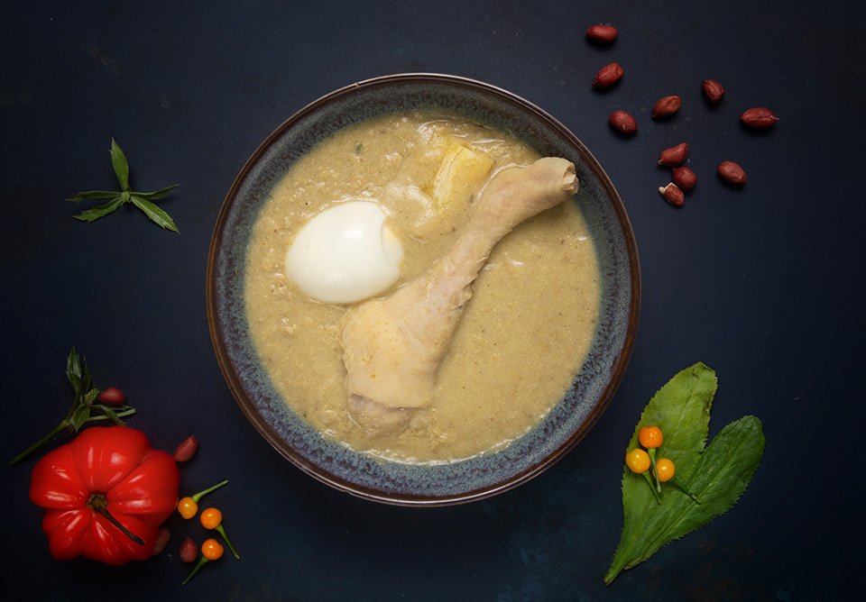 Sopa regional de la selva, hecha a base de caldo de gallina, harina de maiz, maní molido, sachaculantro y ají dulce.